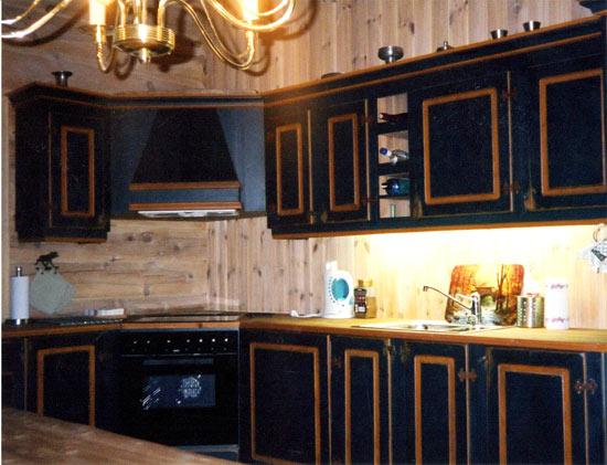 Vår standardlevering av kjøkken har utenpåliggende rustne hengsler på dører, rustne ringer på