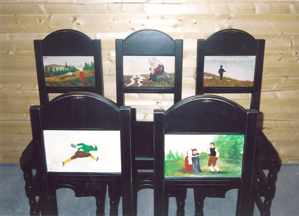Priseksempel: Motiv på stolrygg: kr 500,-